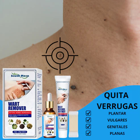 Presentamos el Serum Eliminador de Verrugas + Crema Cuidado de la Piel, un tratamiento en dos pasos que actúa directamente sobre la verruga, secándola desde la raíz sin causar dolor ni dejar marcas.