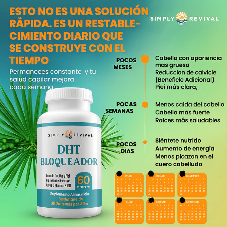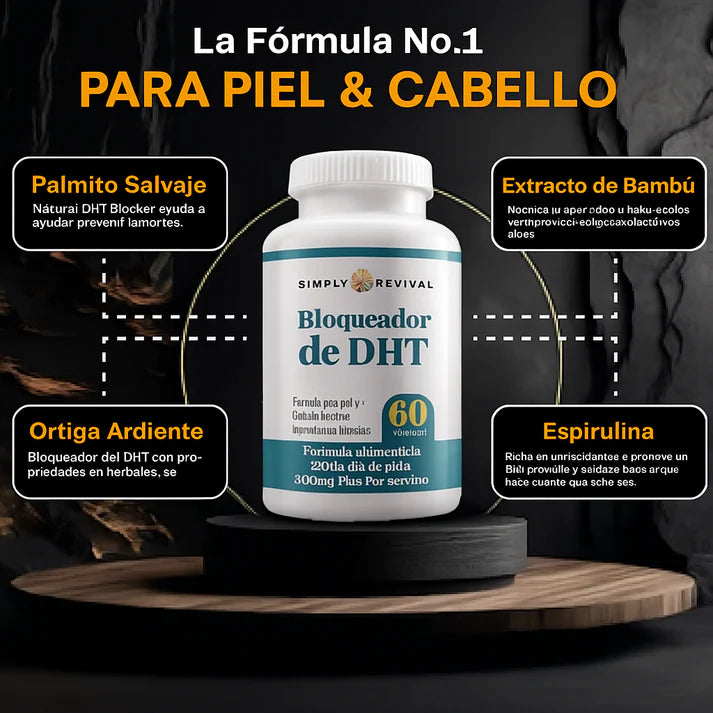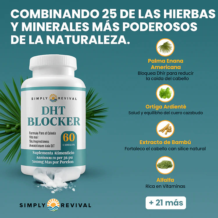 DHT Blocker es un suplemento natural que actúa desde el interior para bloquear esta hormona, detener la caída del cabello, reducir el acné y fortalecer uñas quebradizas 💊🌿